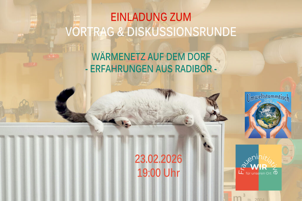 Gemeinsam mit der WIR-Fraueninitiative luden wir am 23. Februar alle interessierten Anwohnerinnen und Anwohner dazu ein den Erfahrungsberichten von Herrn Bellmann (Vorstand der Energiegenossenschaft WITAJ und Klimaschutzmanager Radibors) zu lauschen und anschließend gemeinsam über mögliche Umsetzungswege / einen Übertragungsansatz auf unsere Gemeinde zu diskutieren.